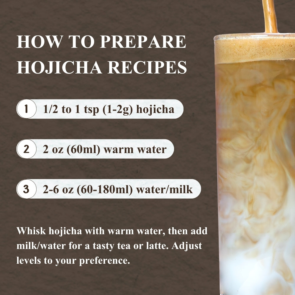 • Versatile Enjoyment: As a powder, it is easy to enjoy hojicha in various forms, great for hot or iced teas, lattes, smoothies, cakes and other creative culinary recipes for an impactful flavor boost.