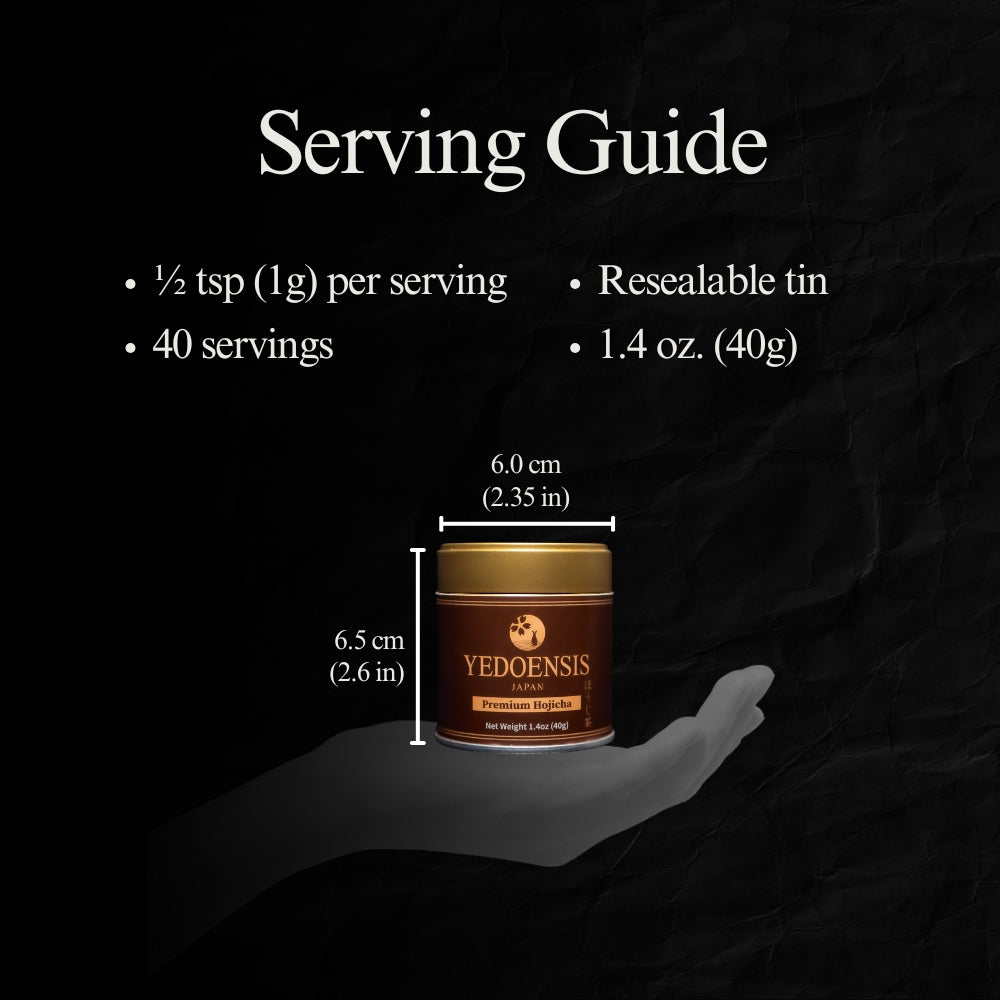 - Premium Quality: Sourced from the finest tea fields in Japan, our hojicha is carefully selected and handled with care to ensure the highest quality. We have taken measures to ensure all ingredients are organic and sustainably produced.