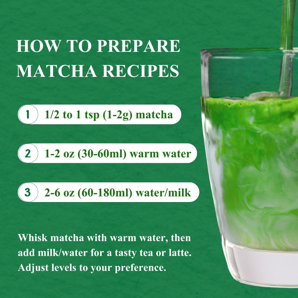 - Versatile Uses: Enjoy matcha in your own traditional tea ceremony, or as flavorful additions to lattes and smoothies. Great for savory dishes such as cakes and other desserts, the possibilities are endless with matcha!